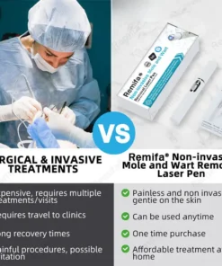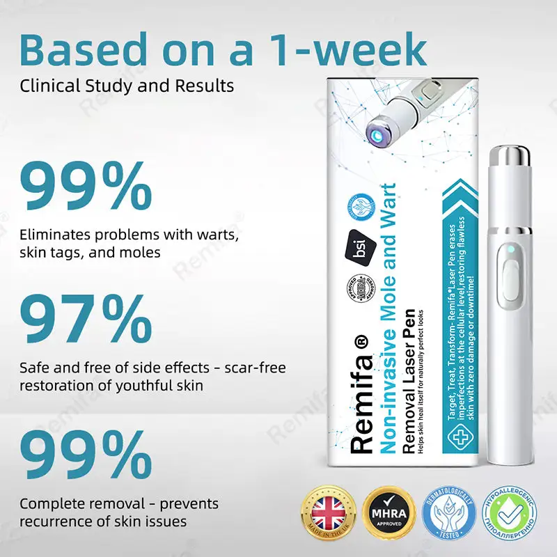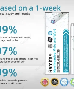 Say goodbye to moles, warts, dark spots, and skin imperfections with the REMIFA® Non-Invasive Mole and Wart Removal Laser Pen. Designed for effortless at-home use, this compact, lightweight device delivers professional-grade results in minutes. Experience visible skin improvement in just 2 weeks!