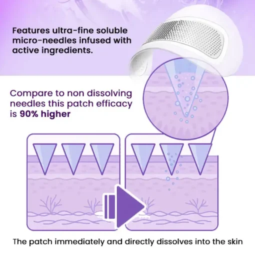 - Each patch features thousands of ultra-fine microneedles that painlessly dissolve into the skin, delivering active ingredients deep beneath the surface.
