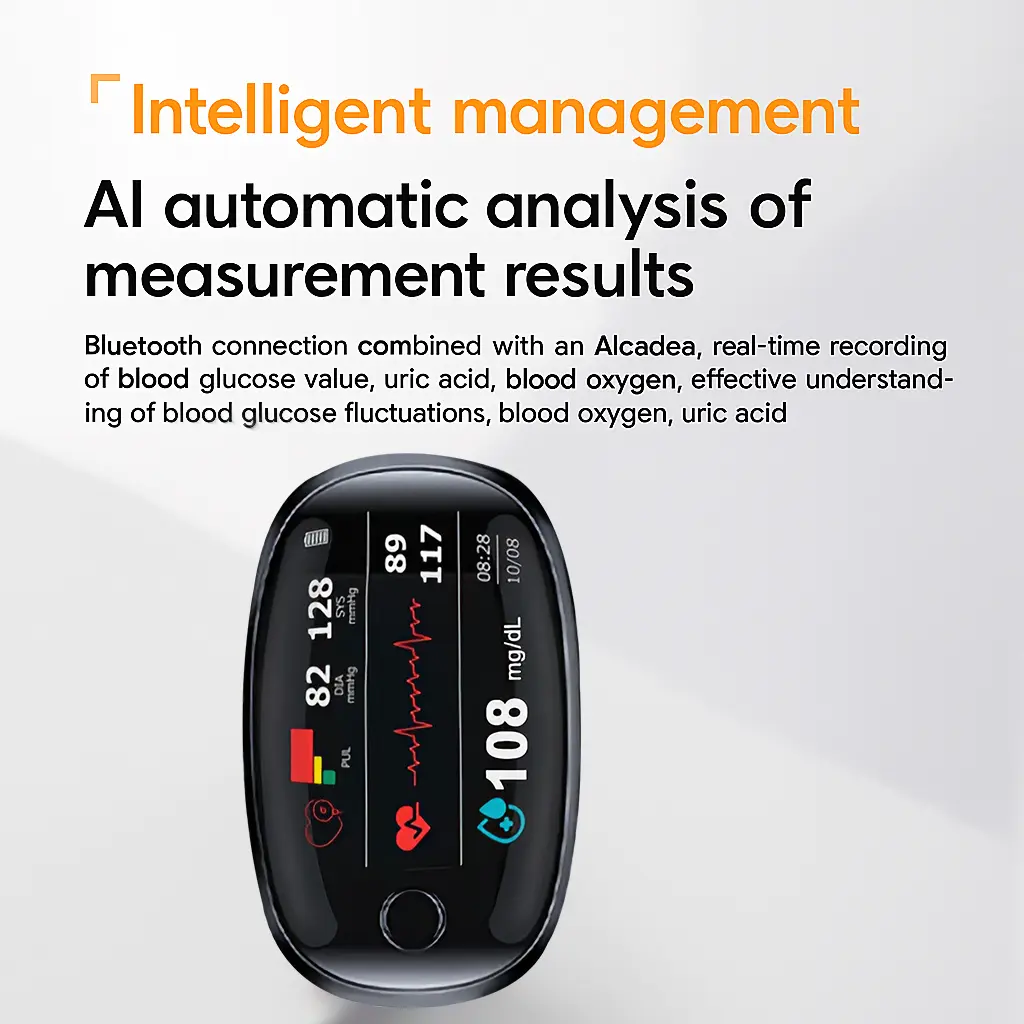 The Newyuo™ MULTI-USE Non-Invasive Laser Meter features a powerful chip with intelligent algorithms for quick, precise measurements. Its low-power MCU chip and advanced “LAMBERTBEER” algorithm capture signals rapidly, ensuring accurate results. Using cutting-edge photonic chip technology, it measures blood glucose, blood pressure, blood lipids, and more. This multifunctional device provides comprehensive health tracking, enabling users to monitor their health with confidence.