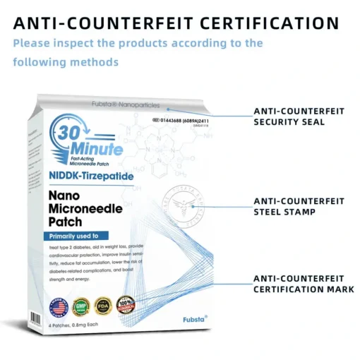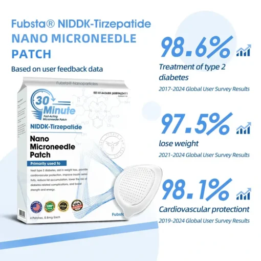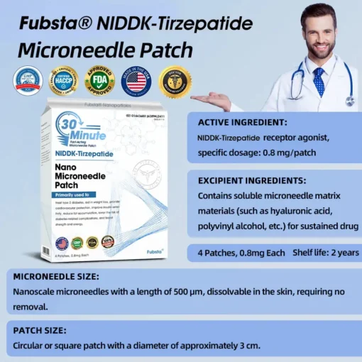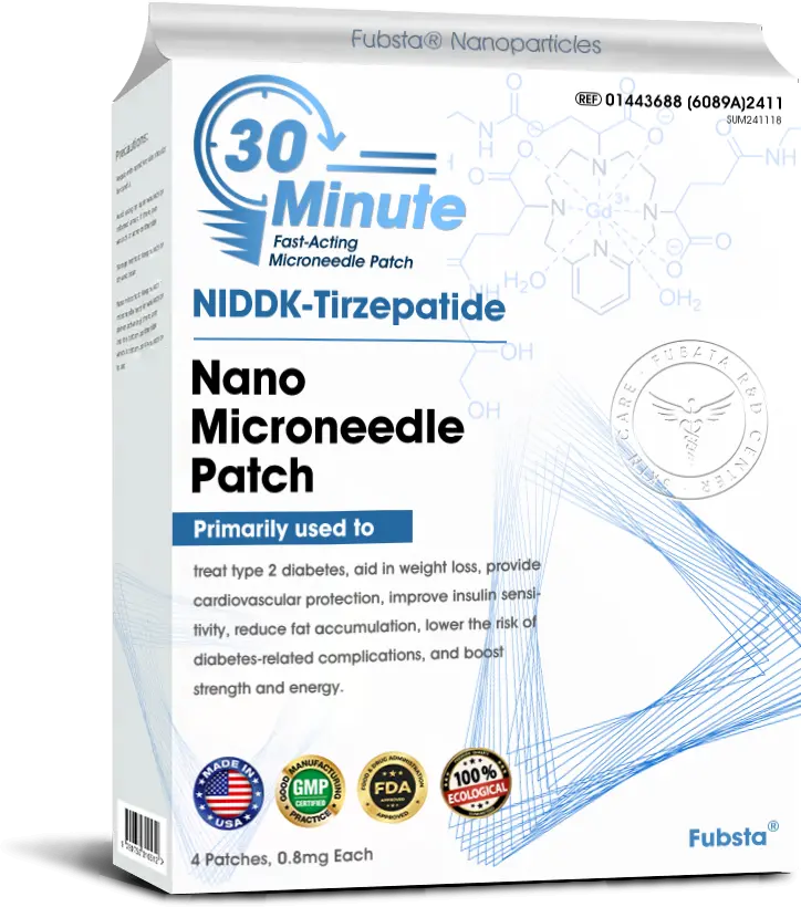The Fubsta®NIDDK-Tirzepatide Nano Microneedle Patch offers a long-lasting. slow release of the medication. ensuring a stable effect over 24 hours without causing any discomfort. With the same dosage and price. it can maintain up to 20 times longer-lasting effects (similar to the difference between an IV drip and a single injection).