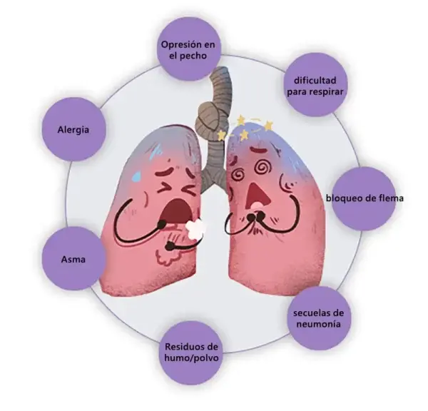 Las enfermedades del sistema respiratorio incluyen alergias respiratorias, asma, neumoconiosis, neumonía fúngica/bacteriana/viral, etc., que son enfermedades que el ser humano puede contraer fácilmente a través del medio ambiente, y que pueden curarse limpiando y reparando los pulmones y las vías respiratorias. Muchas personas no conocen bien las enfermedades respiratorias y no cuidan su organismo. Junto con la virulencia de los últimos años y algunos malos hábitos de vida (tabaquismo, inhalación de polvo, exposición prolongada a alérgenos), el estado de salud se ha deteriorado y ha traído consigo grandes dificultades e inconvenientes para la vida normal y el trabajo.