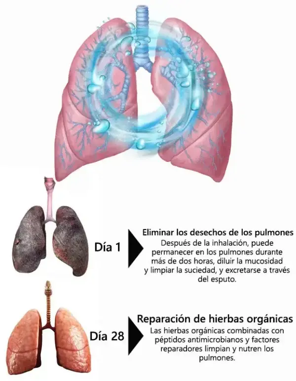 – En un ensayo clínico de 28 días en el que participaron 2.572 personas de todo el mundo, se demostró que el producto tenía un efecto limpiador y regenerador muy potente en los pulmones de fumadores de larga duración o inhaladores de polvo.