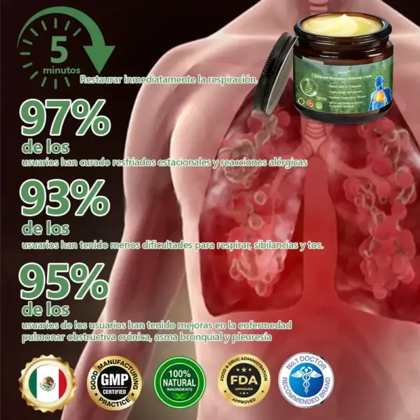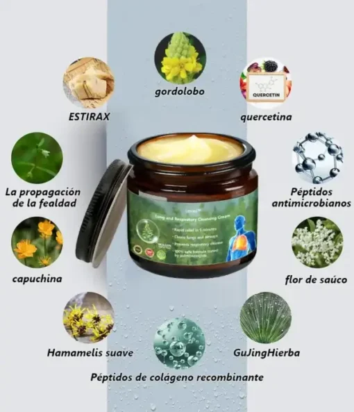 【Professional Crema 】Organic Lung Cleansing & Repairing – Limpia la tráquea y los residuos pulmonares – Repara los alvéolos – Regenera el tejido traqueal – Combate las alergias/asma – Recupera la sensación de respiración sin obstrucciones – Ayuda con la EPOC.