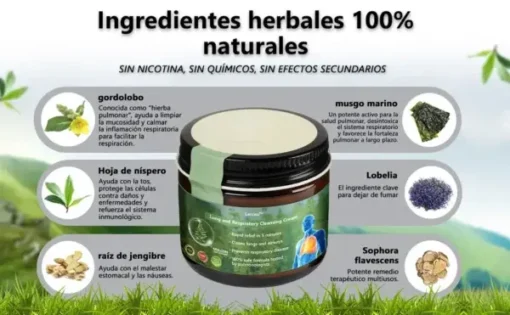 Nuestro 𝑳𝒆𝒓𝒄𝒆𝒂™ 𝑴𝒖𝒍𝒍𝒆𝒊𝒏 𝑪𝒍𝒆𝒂𝒓 𝑳𝒖𝒏𝒈 𝑹𝒆𝒑𝒂𝒊𝒓 𝑪𝒓𝒆𝒂𝒎 combina seis potentes ingredientes naturales que actúan conjuntamente para proporcionar un apoyo pulmonar y una desintoxicación completos, lo que lo hace especialmente adecuado para quienes sufren problemas respiratorios o desean dejar de fumar.