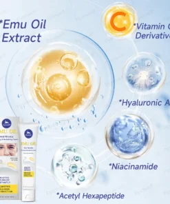 Flysmus® Emu Oil Anti-Wrinkle Firming Renewal Cream is specially formulated to target wrinkles around the eyes. Emu oil works to boost collagen production, helping to lift sagging eyelids and restore skin elasticity. Hyaluronic acid delivers deep hydration, plumping the delicate under-eye area and smoothing out fine lines. Combined with Acetyl Hexapeptide-8, known for reducing crow’s feet and expression lines, this powerful formula firms and refreshes tired-looking eyes—making you look more awake, youthful, and confident.