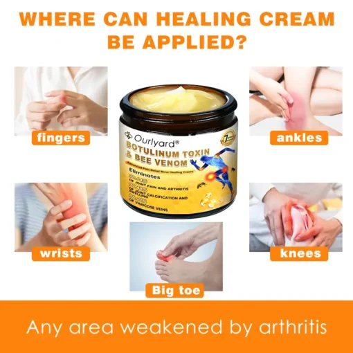 Ourlyard® Botox & Bee Venom Pain Relief & Bone Healing Dual Action Soothing Cream is widely acclaimed for its ability to address a diverse range of orthopedic conditions effectively, offering a trusted solution for improved joint health and relief from debilitating symptoms.