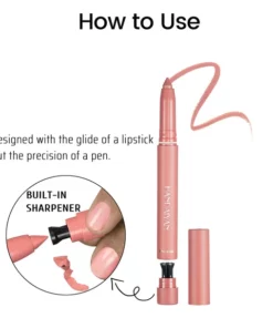 2-in-1 function – both a lip liner and a lipstick, depicting the lip shape while applying color, satisfying all needs. A small design has been added to the bottom, placing the pencil tip on top and gently rotating it to restore the most original tip shape, making it even easier to use!