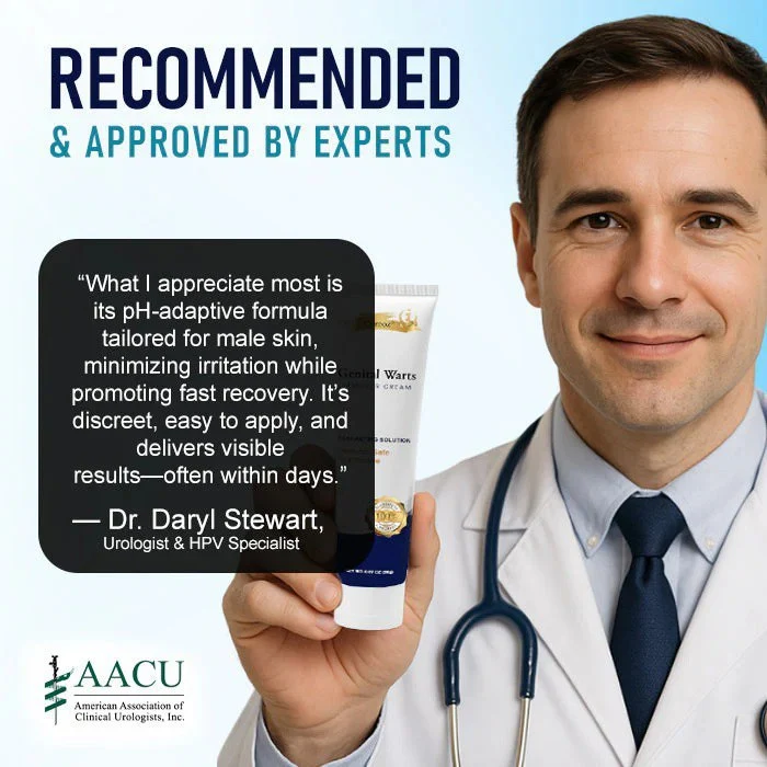 “I underwent cryotherapy twice to treat genital warts, and both times were not only painful but ineffective – the warts kept returning after just a few weeks. Out of frustration, I gave this cream a shot, and I genuinely wish I had discovered it sooner. In just three days, the warts began to soften, and by the end of the second week, they had completely disappeared. No pain, no burning sensation – just real results. Itâs now been over a month, and they havenât come back. – Benjamin Ruskley, 33 years old