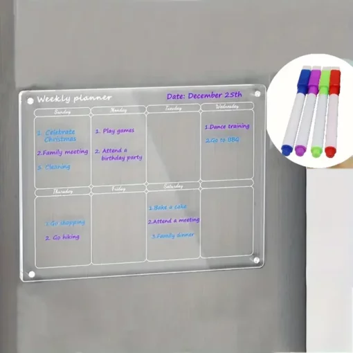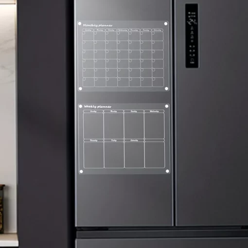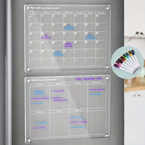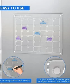 • The acrylic fridge magnetic calendar is a product designed for you to plan your daily life, the stylish clear acrylic magnetic calendar panel and memo set allows you to write more.