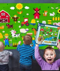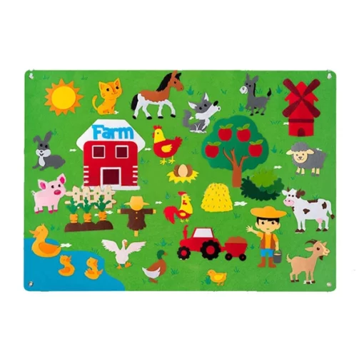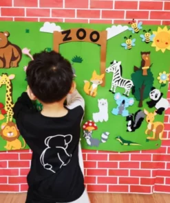 This huge 3.4ft*2.5ft home animal felt toy set comes with 33 pieces of felt, sized for small hands. The interactive felt pieces can be moved repeatedly on the felt board, and the large felt backdrop can be easily hung up with the two sturdy hooks that are included.
