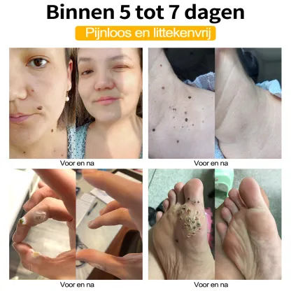 - Wratten en huidtags vallen er op natuurlijke wijze af