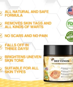 The Bee Venom Mole and Wart Treatment OintmentΒ is the solution harness theΒ potent properties of bee venomΒ to effectively target various skin imperfections, includingΒ skin tags, moles, warts, and spots. Infused with active compounds extracted from bee venom, this advanced formula toΒ break down and gently removing unwanted growths.
