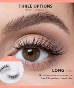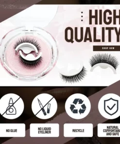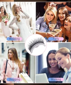 The newest false eyelashes that is easy to use, no need of glue or eyeliner. It is self-adhesive and can be applied in 3 seconds, greatly simplifies your makeup process. Saving time and effort.