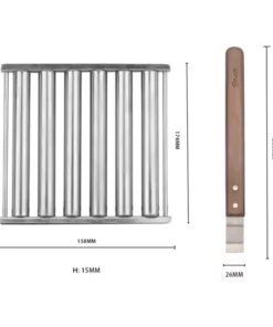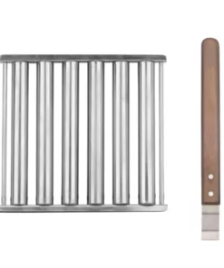 This simple hot dog roll cooker measures 174mm*158mm and is made of stainless steel. Its hardwood handle is 300mm long and easily removable to minimize burns when you use the hot dog roller