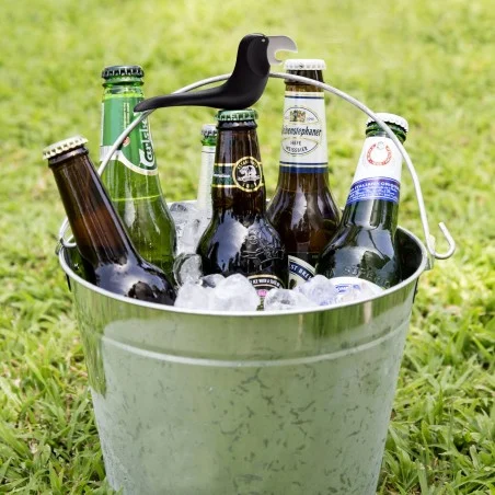 It is made of steel, its wings are made of silicone and it has an internal plastic support to avoid chipping the bottles. The designers wanted it to be durable so the quality of this object is optimal.