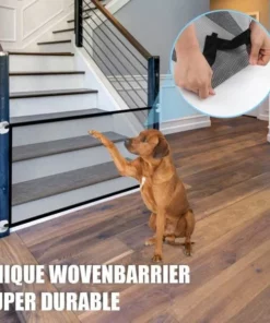 - The Magic Pet Gate is built with tough, partially see-through fiberglass fabric woven to withstand abuse from pets, which is designed to endure pets’ claws. so it is very hard to be broken and the dogs can NOT get through easily.