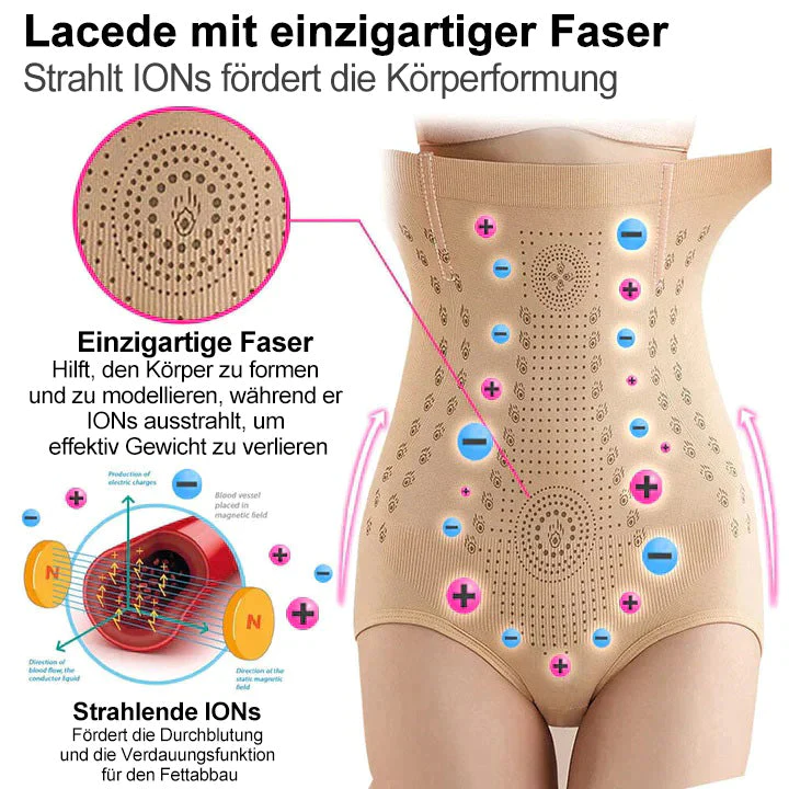 Mit Hilfe der IONs, die von der Unique Fiber ausgestrahlt werden, und der nahtlosen, einteiligen, körperformenden Kompression unseres Shapers können Sie abnehmen, Fett verbrennen und Ihre Hüften formen. Und das ist möglich durch die Konzentration von IONs um die Taille, die das Bauchfett bekämpft, und die formenden Eigenschaften der Kompressionspassform unseres Shapers.