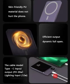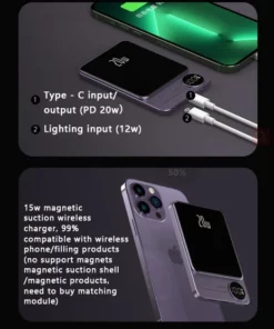 2.As the magnetic power bank has been hot while charging is normal. In case of overheating, it will automatically reduce the charging speed or stop charging until the temperature drops.