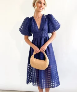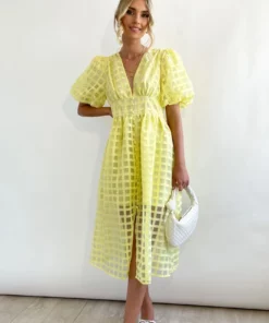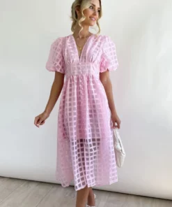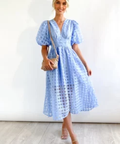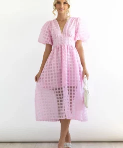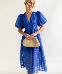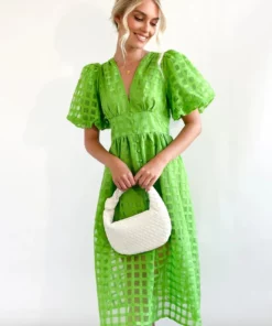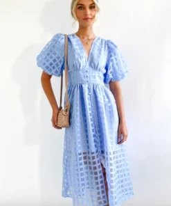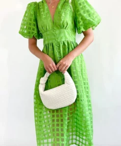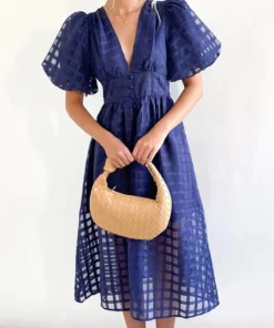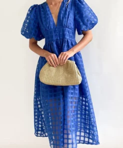🔥Beauty Square Patterned Fabric Puff Sleeve Midi Dress