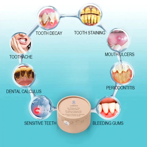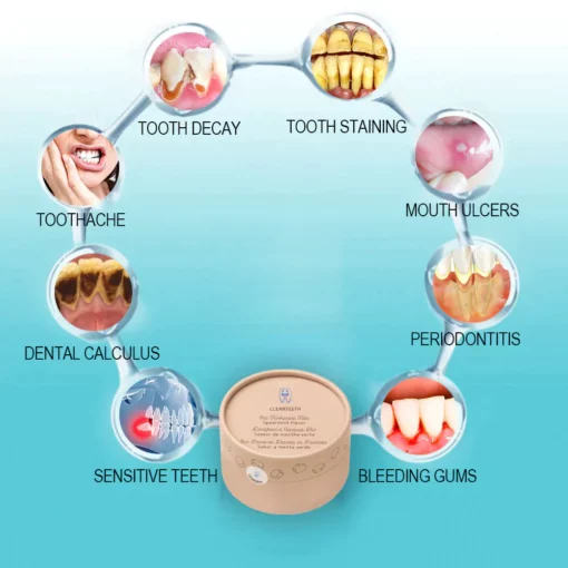 CLEANTEETH™ is the newest product certified by the American Dental Association and recommended by dentists. Perfectly solve all oral problems, including dental calculus, bad breath, oral ulcers, dental caries, bleeding gums, tooth sensitivity, gingivitis, loose teeth, periodontitis, gingival swelling, tooth damage, tooth loss, etc., without any side effects. Made from 100% natural herbs. Suitable for everyone including children, young and old. “