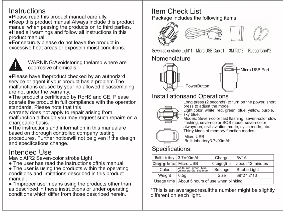 🌈7 Light Colors & 31 Light Modes: There are 7 colors: white, red, green, blue, yellow, pink purple, ice blue, and different light modes: static, fast flashing, slow flashing, SOS & civil aviation mode.