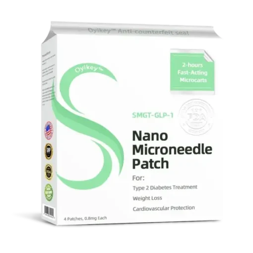 The Nano Microneedle Patch contains SMGT-GLP-1 in each patch. It works by mimicking the action of Glucagon-like Peptide-1 (GLP-1), promoting insulin secretion, inhibiting glucagon secretion, and delaying gastric emptying, which helps control blood sugar levels and aids in weight loss.