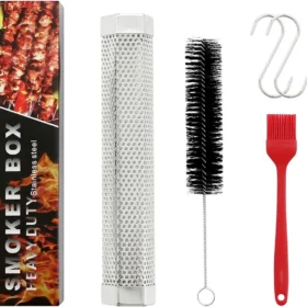 - ❤️【GIFT BOX INCLUDES AND IDEAL FOR GIFT CHOICE】Gift box package includes 1 x 12″ Hexagon Pellet Smoker Tube; 1 x Cleaning Brush; 2 x S Hooks; 1 x Silicone Brush. It is a perfect gift idea, just have a try.