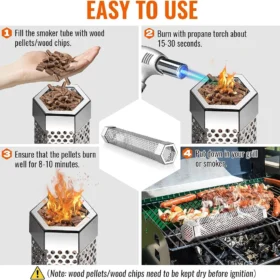 - ❤️【UP TO 5+ HOURS BILLOWING SMOKE】Just add your favorite wood pallets in our smoker tube (Cheery, pecan, apple, mesquite, oka etc), use a torch to light it and let it burn for about 3-5 minutes, then blow the flame out and put the smoker tube on the grill. One smoker pipe can be filled with your favorite pellets to provide billowing smoke up to 5+ hours.