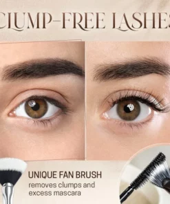 120° Folded Fan-Shaped Brush ensures an even application of mascara while minimizing both clumping and smearing!