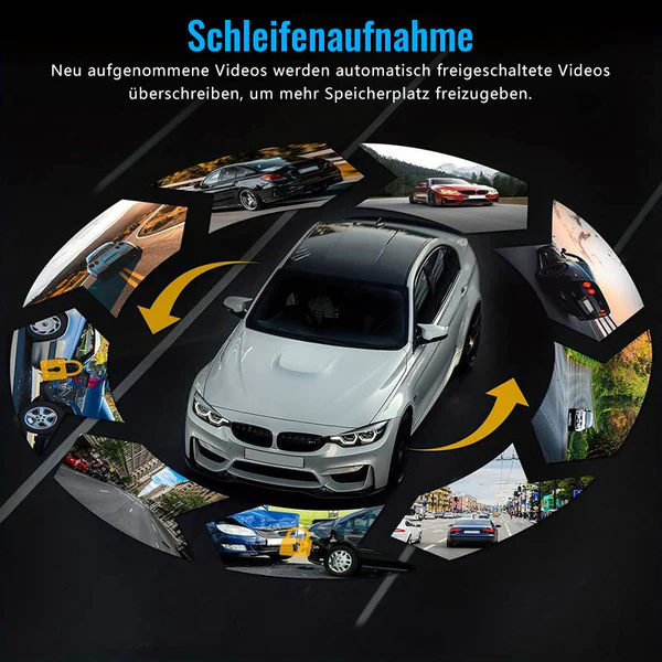 Die Dashcam überschreibt das älteste ungesperrte Filmmaterial, wenn die Speicherkarte voll ist, um sicherzustellen, dass Sie kontinuierliche Aufnahmen haben, ohne manuelle Dateiverwaltung durchführen zu müssen.