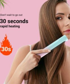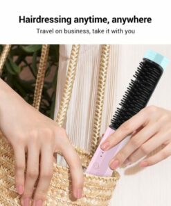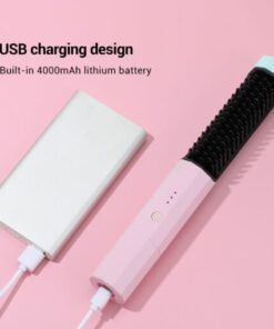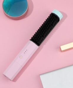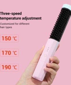 Bristles help straighten hair with lower temperatures. Rechargeable battery lasts for 40 min and charges with USB-C.
