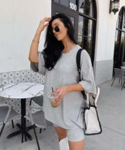 Complete Your On-Trend Look With The Oversized Tee Biker Short Set In This Summer!