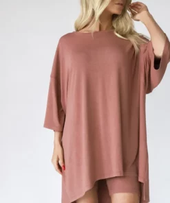 This oversized boyfriend tee comes with a pair of matching biker shorts, sexy chic and energetic style. Flowy and comfy textured fabrication is soft, very stretchy and ribbed, attractive for summer! Once you’re in these, you’ll never, ever want to take them off.