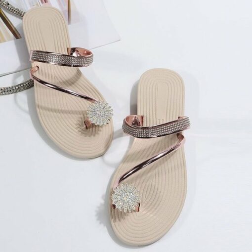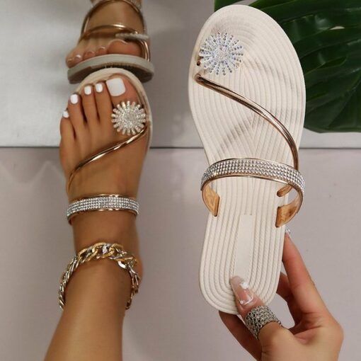 🔥🔥2022 summer new shiny flat shoes rhinestone sandals