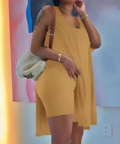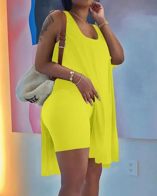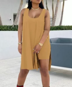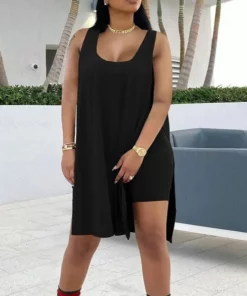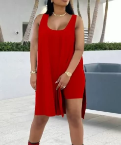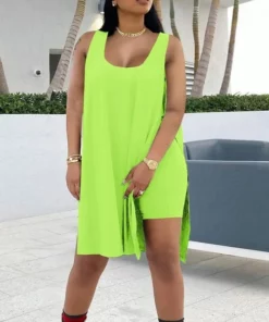 - Package includes:1 X U-neck sleeveless dress& Shorts Set