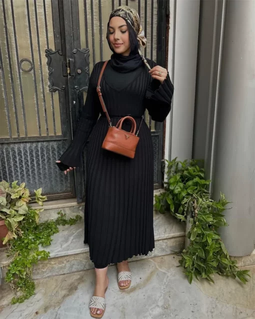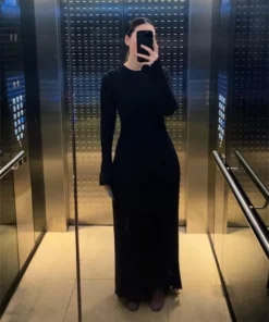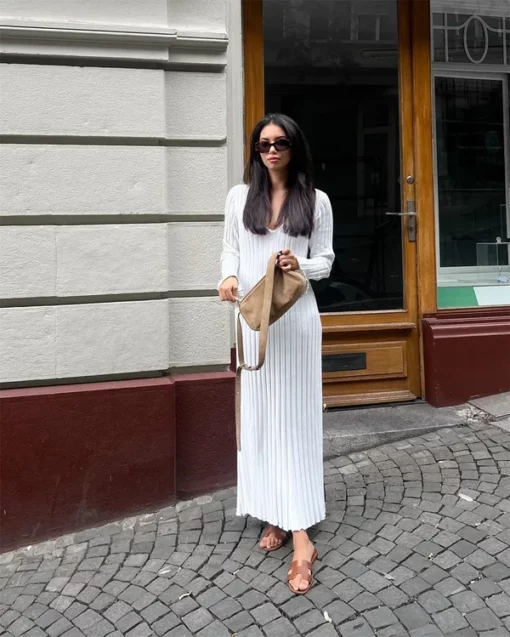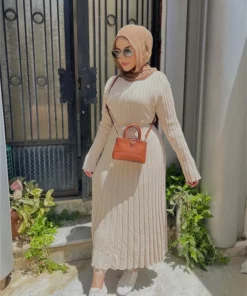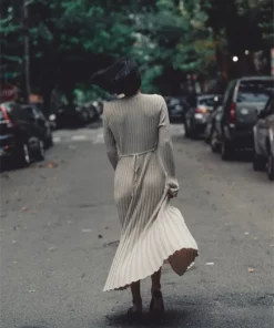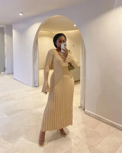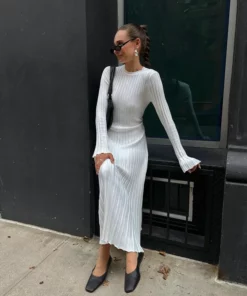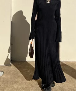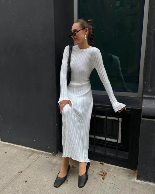 2023 Fall New Sleeved Knit Midi Dress is designed to provide a flattering fit with its ribbed knit construction and a-line silhouette. Constructed from a soft and stretchy fabric, this dress is ideal for everyday wear. The ribbed fabric creates a slim and stylish shape, perfect for all kinds of occasions.