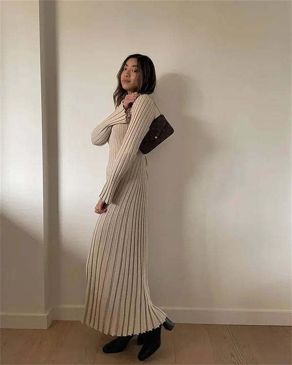 This 2023 Fall New Sleeved Knit Midi Dress Is An Indispensable Item In Your Wardrobe!