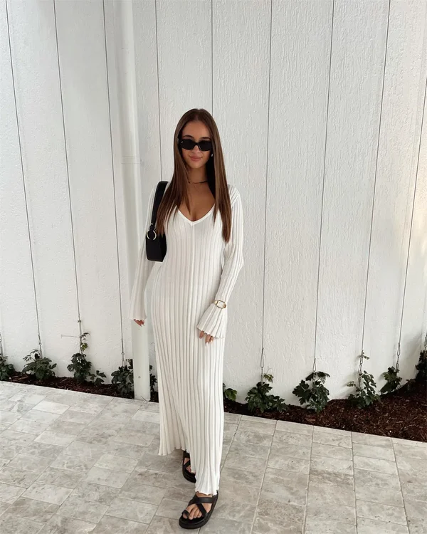 2023 Fall New Sleeved Knit Midi Dress
