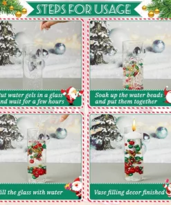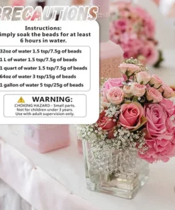 The gel beads will grow up to 17 – 20 mm after absorbed water,This will give you plenty of wedding beads for centerpieces or clear marbles for flowers.