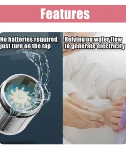 This product has mini built-in generating electricity devices,it does not need batteries and power supplies, as long as the water flow it will give out light.The products are beautiful, environmentally friendly and energy efficient.
