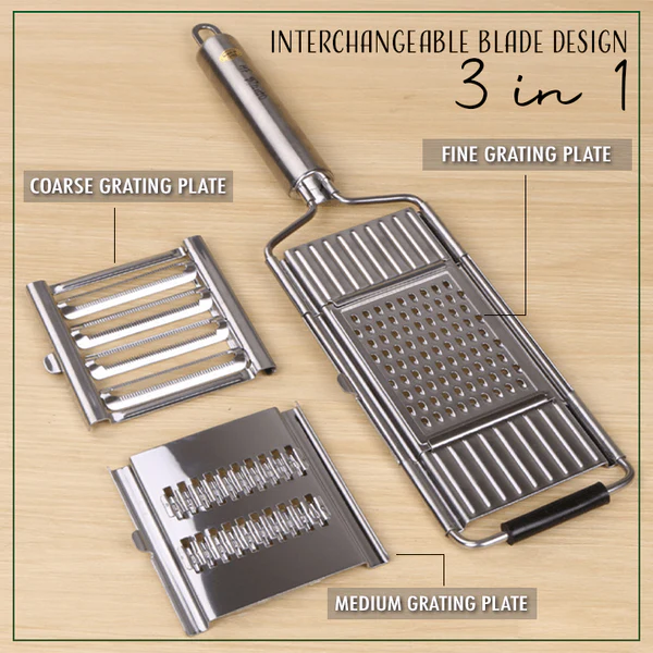 Say no to the old box graters! Our 3-in-1 Food Slicer Grater allows busy cooks the time-saving opportunity to perform multiple tasks with one easy to use tool, which cuts preparation time in half. The interchangeable blade design ensures quick switching between slicing and grating tasks.