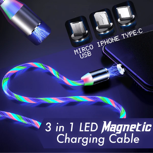 Introducing our 3 in 1 LED Magnetic Charging Cable – an innovative way to charge your device in a much more simple and efficient way.