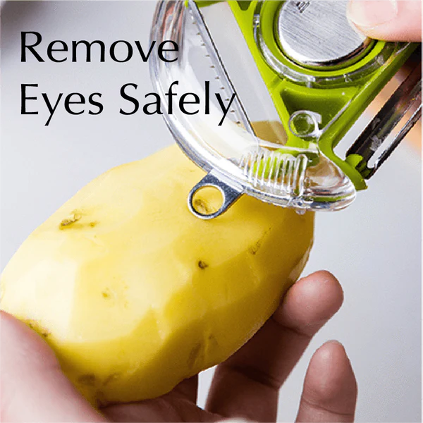 Built-in potato eye remover easily takes off imperfections from vegetables. - Must-have Kitchenware: