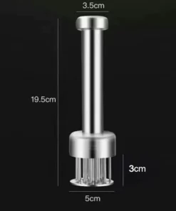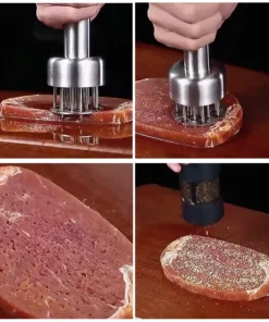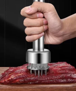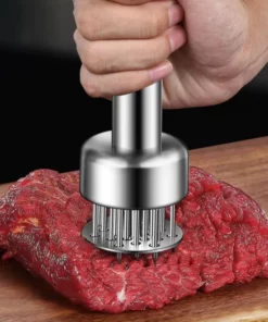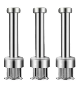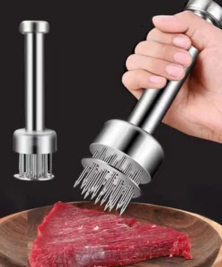 These 304 Stainless steel needles break down meat fibers/connective tissues and make marinade absorb better and faster, cook more evenly, and also hasten the cooking time.