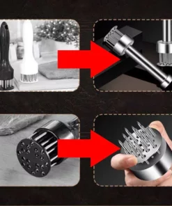 This Meat Tenderizer tool keeps meat shape and fibers well while the meat hammer/mallet destroys shape and fibers. Using 21 sharp needles to create tiny channels within the meat that facilitate rapid penetration of the marinade. This process breaks down connective tissues, resulting in a juicier and more flavorful dish without altering its shape or appearance.