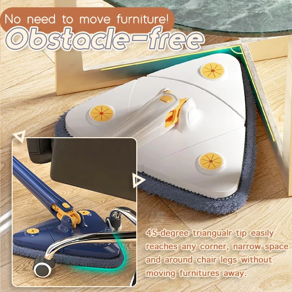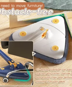 A high-performance triangle shaped mop designed with a 360° rotatable function for a convenient full direction cleaning experience. Allowing it to flexibly swivel and reach easily through every corner as well as dead ends and deep gaps that can be reached by any ordinary mops. Equipped with a handy thickened microfiber cloth that can successfully clean up both wet and dry messes. It can absorb any liquid for a quick 5 seconds and firmly lock all dust and dirt in it with its superior adsorption abilities. Providing you a maximum cleaning on all floor types and surfaces without leaving any lint or a single debris behind only for you to step on after.