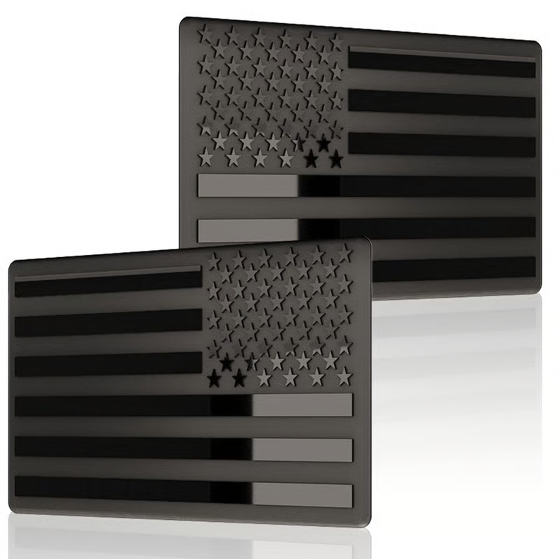 3D Aluminum US Flag Emblem – Set of 2 | Weatherproof, Matte Black Patriotic Badges for Cars, Trucks, Motorcycles & Gear