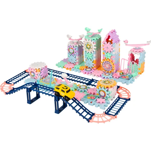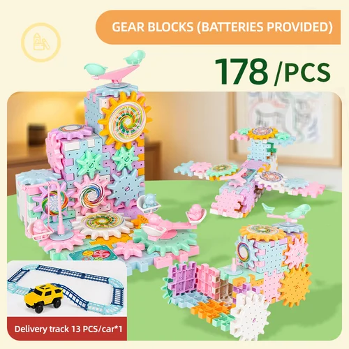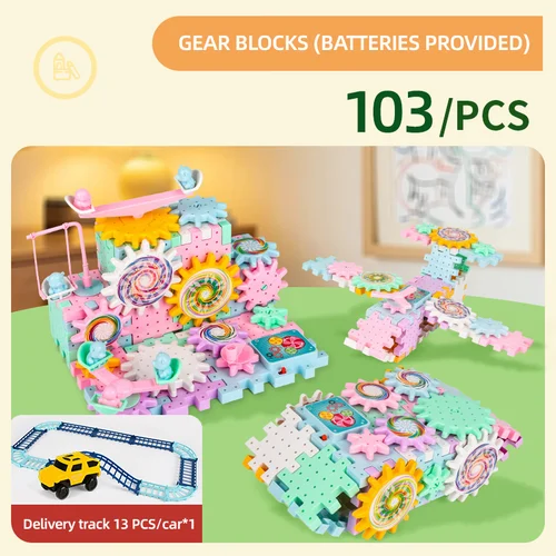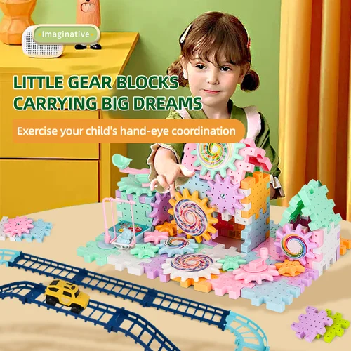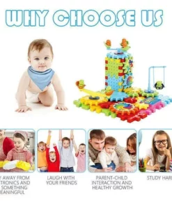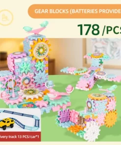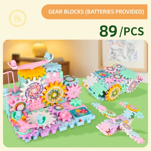 - Supports STEM by introducing children to sorting, grouping, counting, designing, constructing, and putting physics into play with spinning gear movement. Learning gets more intricate as children’s abilities advance.