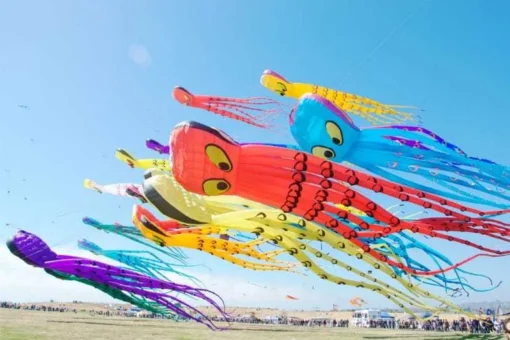 Want Your Friends To Pick You Out From The Crowd or on the Beach? With this 3D huge 8 meters long octopus kite ( It’s about the length of two average cars! ). The giant squid kite in flight resembles an alien invading the Earth! Eye-catching. stunning. and sure to be the center of attention.