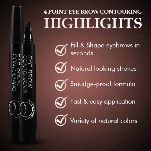 4 Point Eye Brow Contour creates & mimics natural & define eyebrows, the 4-point pen is compared to the traditional eyebrow pen which requires shape and fills separately, the design combines enable to combine of two steps into one, resulting in naturally defined eyebrows!